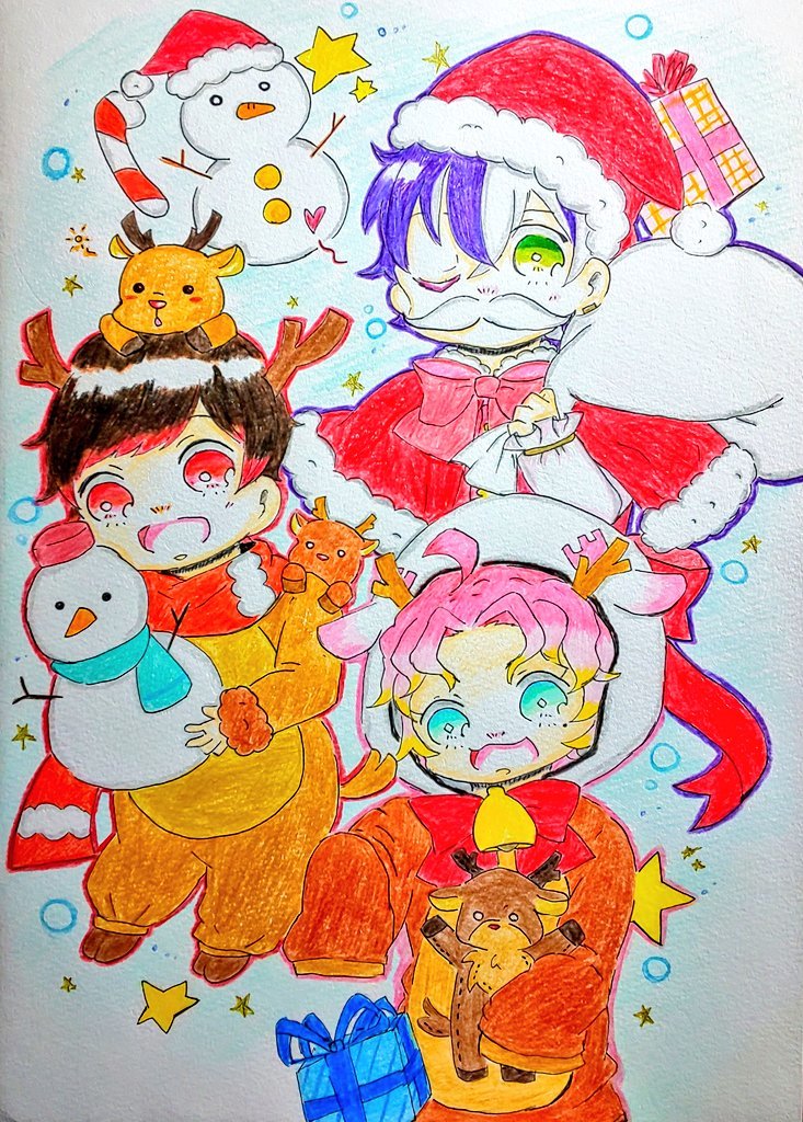 2 28 少し早いですが… 『🎅⭐️Merry Christmas⛄️🦌』 初瀬くん🎅 れんがさん🦌 しかさん🦌 #ミミすた #描くしか北斎 #れんがあーと #初瀬におまかせ 21/11/26 23:38