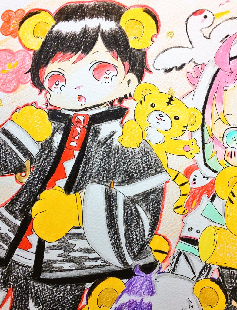 明けましておめでとうございます🎍✨ 2022年は🐯年と言うことでミミすたメンバーと寅🐯!!! 今年もワイワイ楽しい配信楽しみにしてます!! 素敵な年になりますように💜🧱🦌 #ミミすた #初瀬におまかせ #描くしか北斎 #れんがあーと