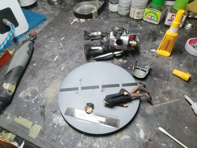 先日の大地震で破損したおねーさん修復作業...😿。 #マシーネン