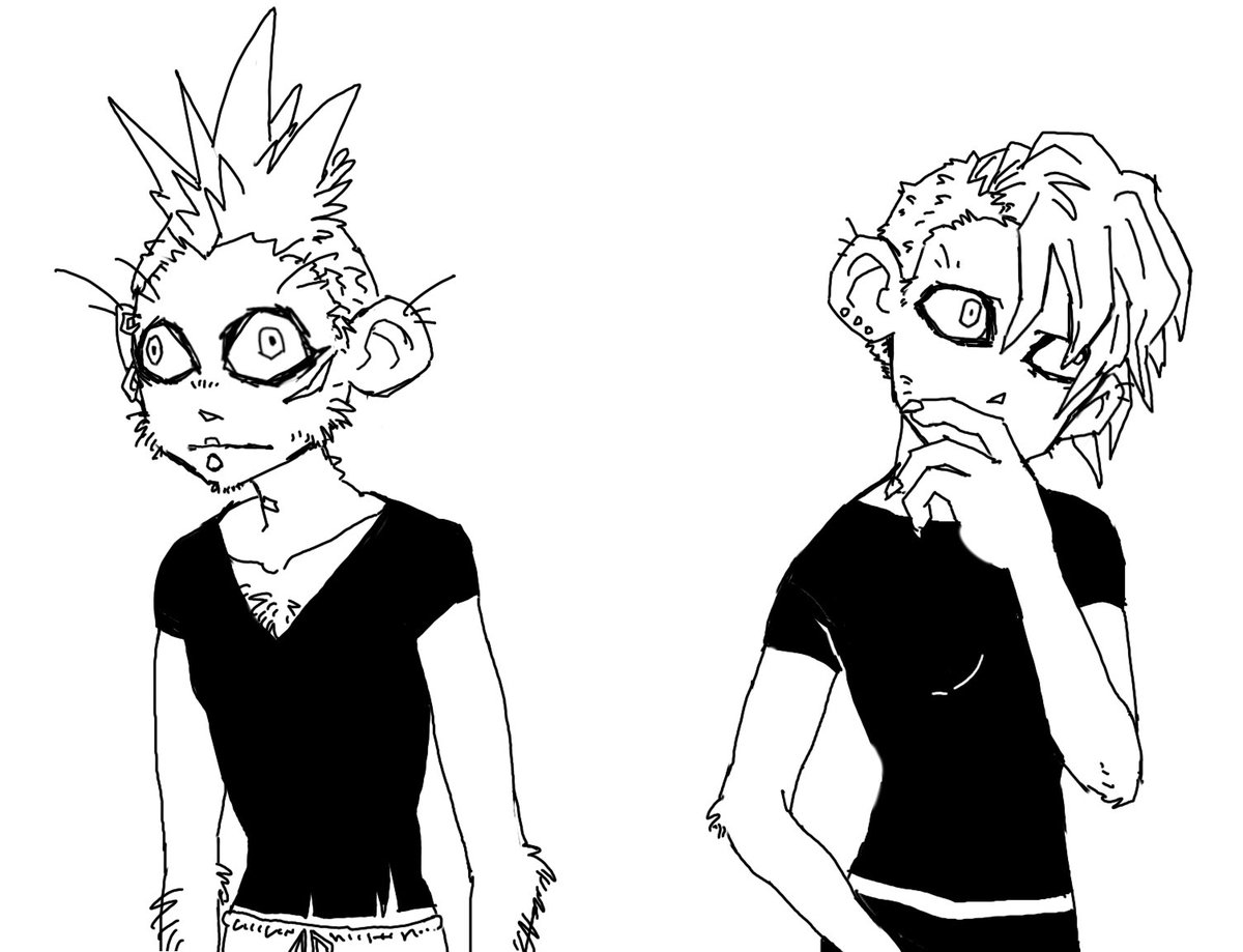 オリキャラ2人ボティ君(金)とアドノスさん(黒) 人を描く練習にいいわね.... 正直に申し上げますと好きな要素をゴリゴリに詰め込みました #イラスト #オリキャラ
