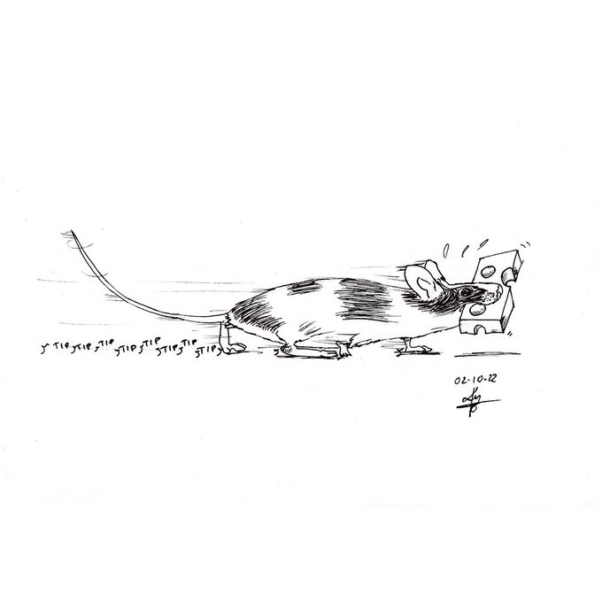 Inktober day 2: scurrying away with stolen cheese. #scurry #inktober2022 #inktoberday2 #inkdrawing #illustration