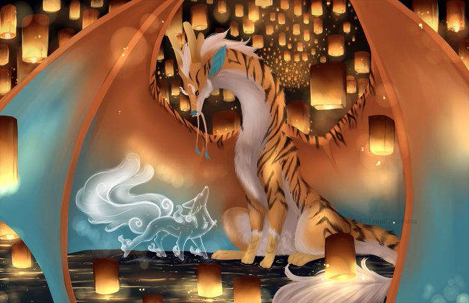 1 7 One of my dragon characters giving some guidance to a little friend! #dragon #wolf #illustration #artwork #digitalartwork #ArtistOnTwitter 19/07/12 10:15