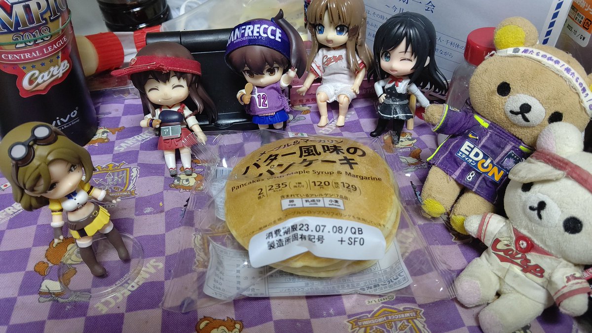 #深夜のねんどろ撮影60分一本勝負 7/6 お題: けーき パンケーキとな! で 🥞パンケーキと言えば 艦娘 「はちみつ🍯」 クマ🐻たち 「おやつ🥞」 ザラさん(コトブキ飛行隊) 「うちのキリエ」