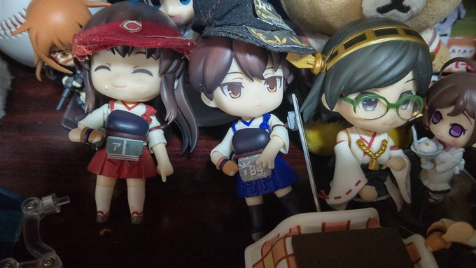 #深夜のねんどろ撮影60分一本勝負 2/26 お題 : ぼうし 遅刻 2/27 お題 : しゅげい ふらいんぐ 赤城 「帽子似合ってますよ」 加賀 「赤城さんこそ」 霧島 「いいな!私も欲しいな」 ということで、護衛艦もここまでできた事ですし、霧島さんのも作ってしまおうと思います。艦の方優先ですが