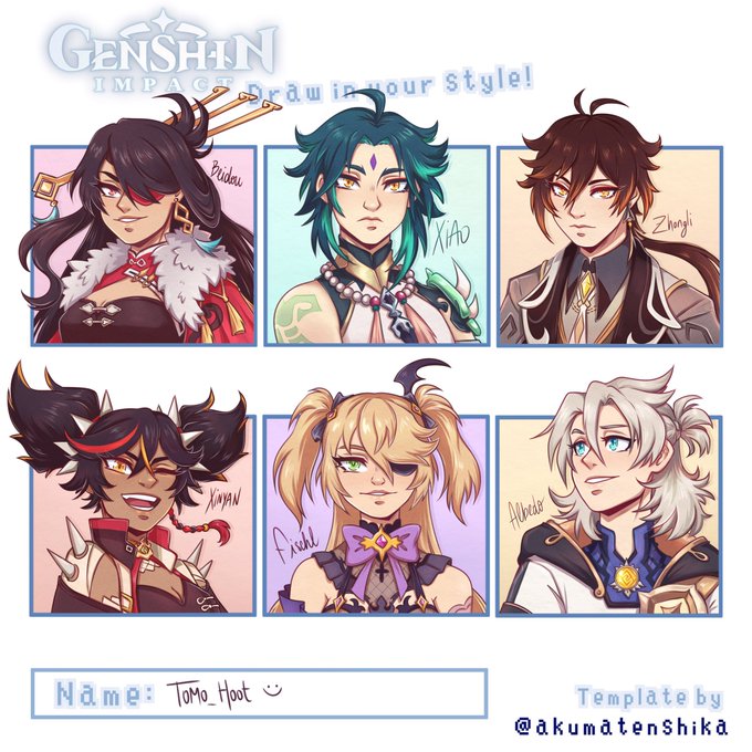 ✨ Draw this in your style ~ #GenshinImpact #genshinimpactfanart #xiao #zhongli #Fischl #Beidou #albedo #xinyan