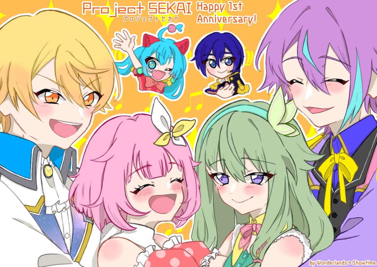 #プロセカ1周年記念イラスト #prsk_FA プロセカもうすぐ1周年!!おめでとうございます!!!1年前が懐かしいです😊これからも素敵な登場人物たちをセカイの狭間から見守っていきたいと思います!!応援しております〜!!🙌✨✨