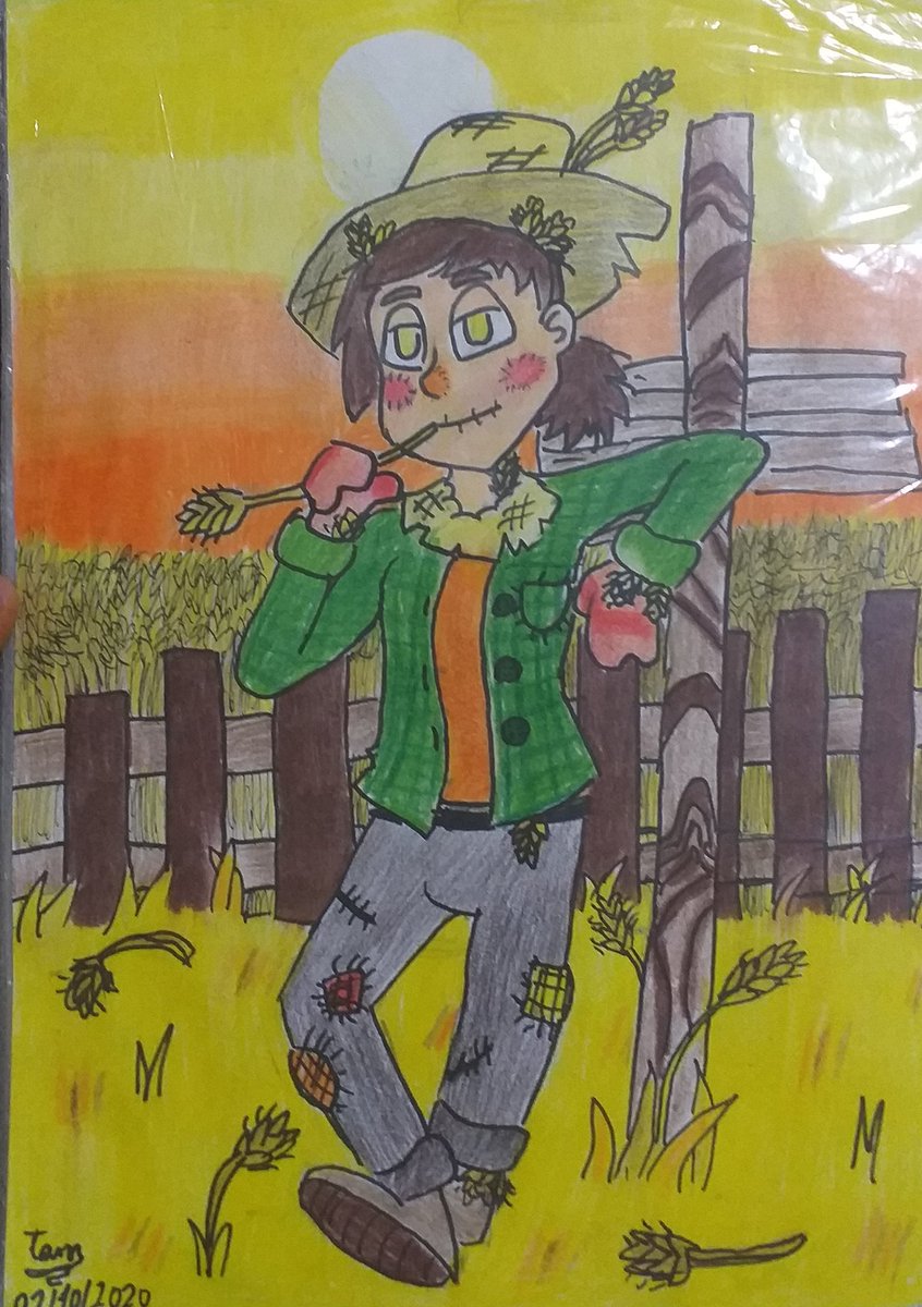 #witchtober #Witchtober2020 #inktober2020 #drawtober2020 Dia 2-wheat /trigo Meu oc jonhatan como espantalho "Oque oces fazem por essas bandas? Nao viram nenhum passaro viram?"