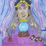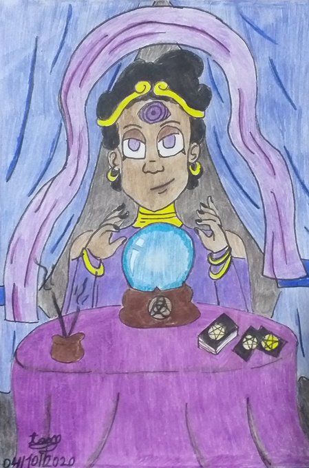 #witchtober #Witchtober2020 #inktober2020 #drawtober2020 Dia 4-future /futuro Meu oc Dave ,como aquelas pessoas qu eveem o futuro com cartas na bola de cristao etc "Oque faz ai em pé? Sente-se e veja seu futuro"