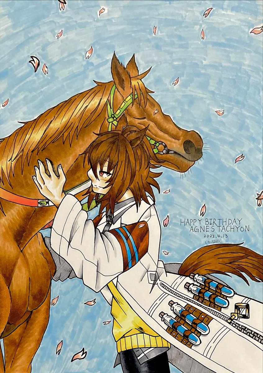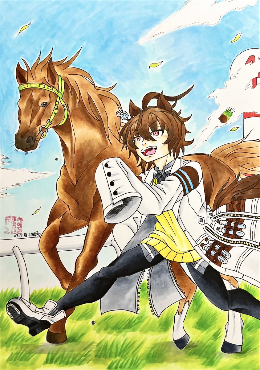 #アグネスタキオン生誕祭2023 神話のその先へ アグネスタキオン号及びアグネスタキオンの誕生日という事で今年も描きました。ギリギリセーフ。 去年の12月にその瞳にやられて以来、タキオンのモルモットとしてやって来ました。そしてこれからもずっとタキオンのモルモットです!