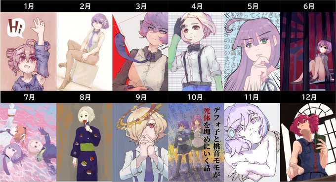 8 22 ちょっと早いけど、今年描いたものまとめ。 ひと月に、カラーを一枚以上描けてえらい! 21/12/12 23:49
