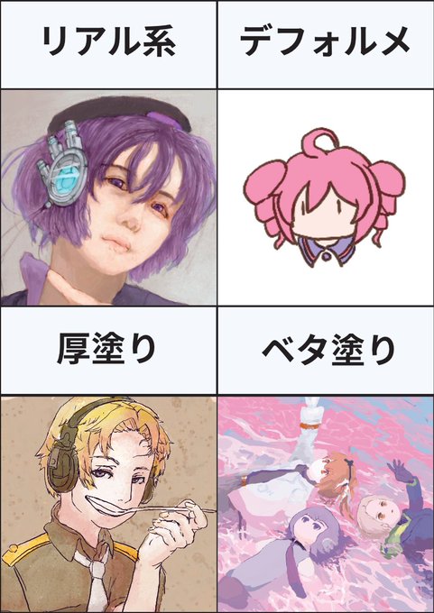 描く方法に引っ張られる。 だいたいここ一年くらいに描いたやつ。 #世界私の絵柄変わりすぎだろ選手権