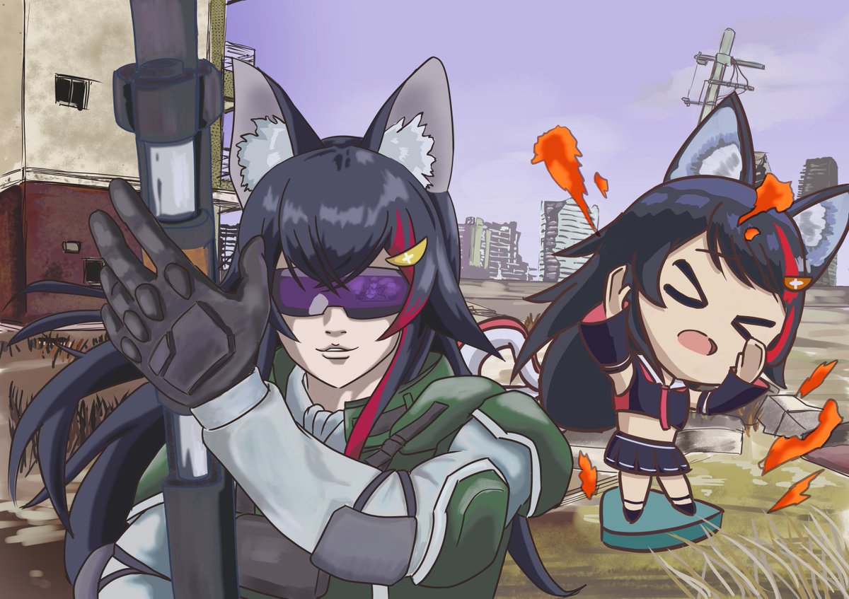 うんこ座り待機してたら、逆光の中kson総長登場!みたいな感じで描きました。 #イラスト #白樺るるは #るるはあーと #ksonART