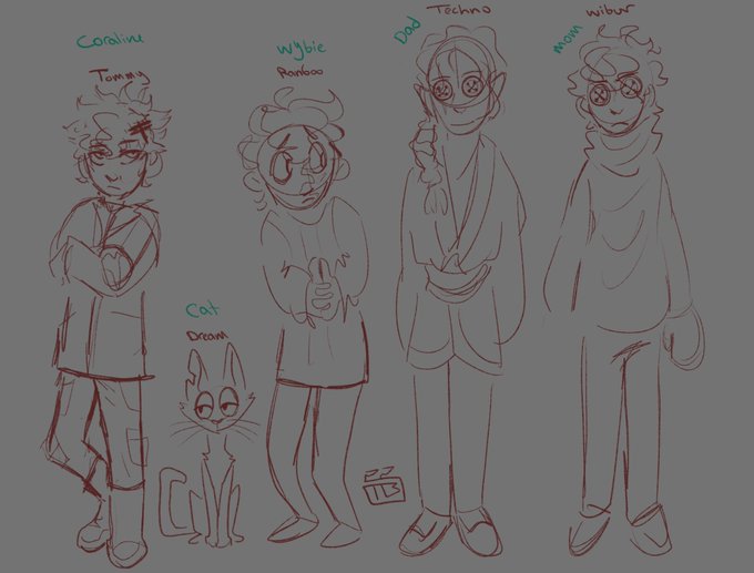 I’ll do more refined drawings later BUT — DSMP Coraline AU!! #dsmpfanart #tommyinnitfanart #ranboofanart #technobladefanart #wilbursootfanart