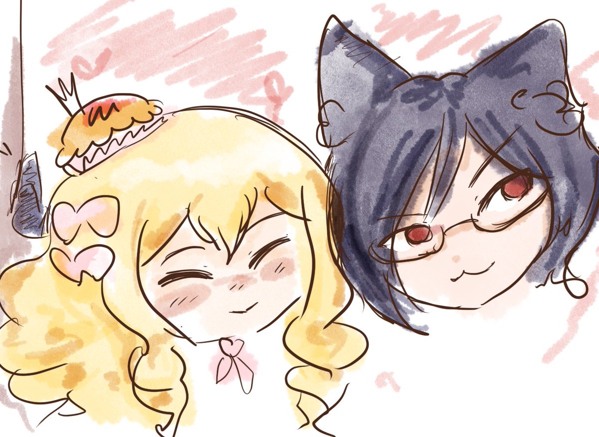 Milky and Fennel kissing under a tree #描いてミル