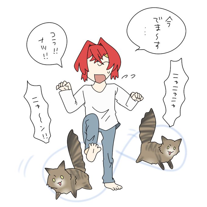 慌ててるときとか足にすり寄ってきて歩行の邪魔してくるの猫あるある ナツ君かわいい #絵ンジュ