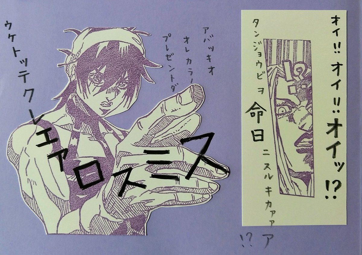 (アバの誕生日のお祝いに駆けつけたフーゴ。が、なぜかパープルヘイズを出現させて、眼光鋭くアバを睨みつける。不穏…!!) #レオーネ・アバッキオ生誕祭2023 #レオーネ・アバッキオ生誕祭 #アバッキオ生誕祭2023 #アバッキオ生誕祭