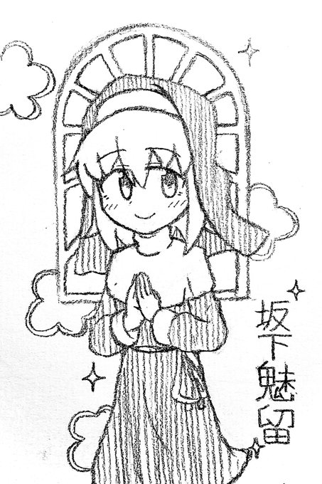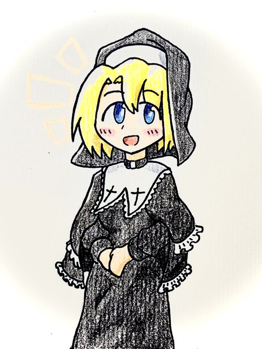 9 47 今日はでんまるさん(@denmaru2)のオリキャラの坂下魅留ちゃんを修道服姿で描きました! 22/08/18 00:56