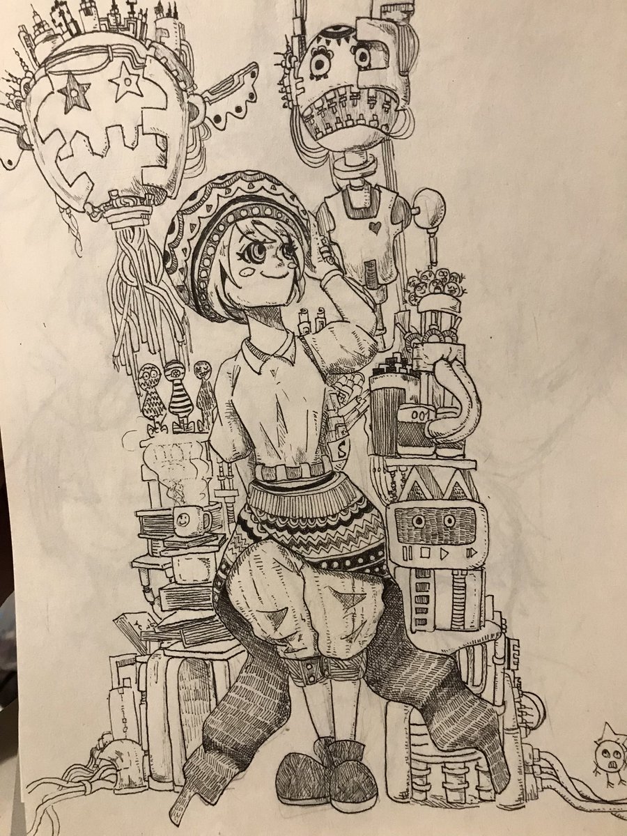 #イラスト 2.3年前に描いたアナログ絵見つけた。 米津さんに影響受けまくってます。 今見てもよく描き込んだな笑