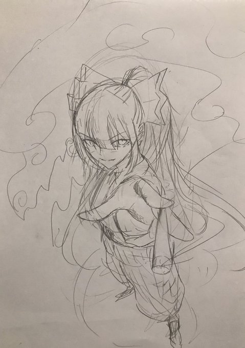 1 6 #毎日ワンドロ #イラスト 藤原妹紅 アナログのみ!俯瞰絵難しいけど楽しい(*´∀`*) 23/04/06 23:07