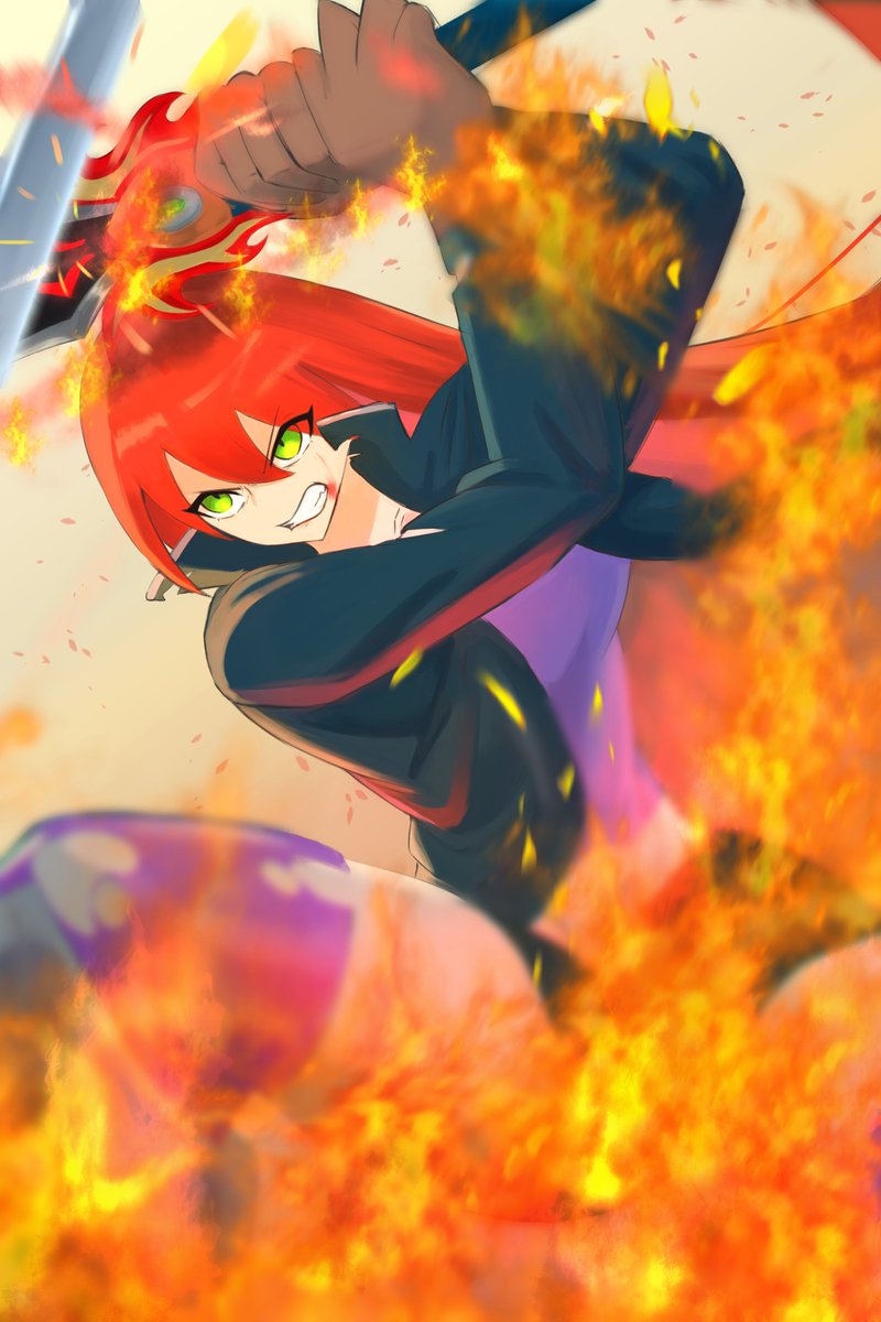 #毎日ワンドロ #イラスト 藤原妹紅 アナログのみ!俯瞰絵難しいけど楽しい(*´∀`*)