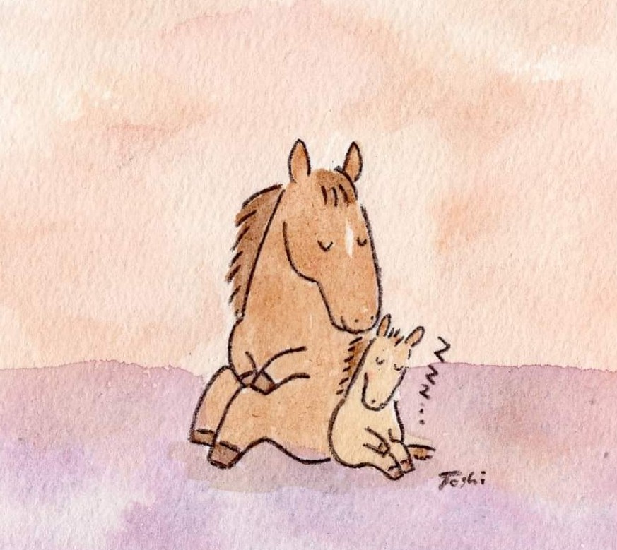 6 42 お座り馬イラスト🐴✨ 先程は間違えて色がくすんだ写真の方をUPしてしまったのでもう1回😊 #馬イラスト #うまさんぽ展 #アトリエコメット 21/08/22 20:13