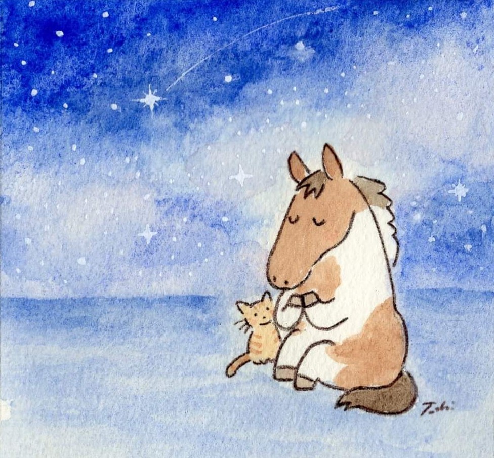 星に願いを🌠 以前制作したイラストと立体です☆ #七夕 #馬と猫 #イラスト #クレイアート