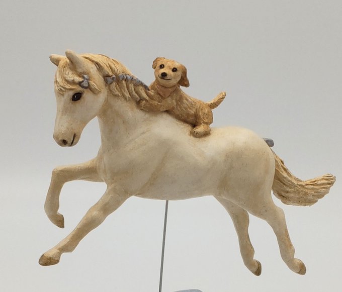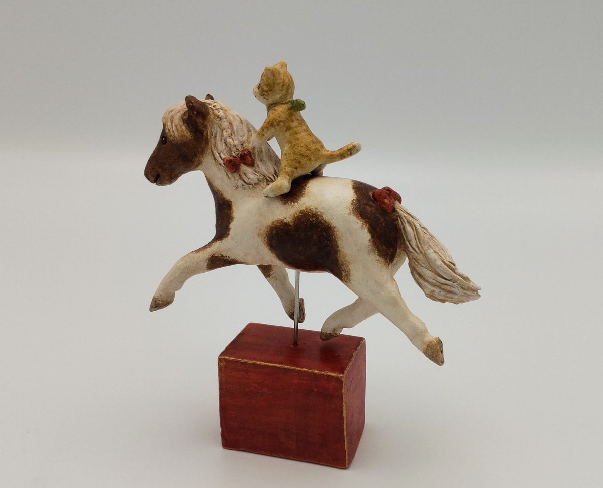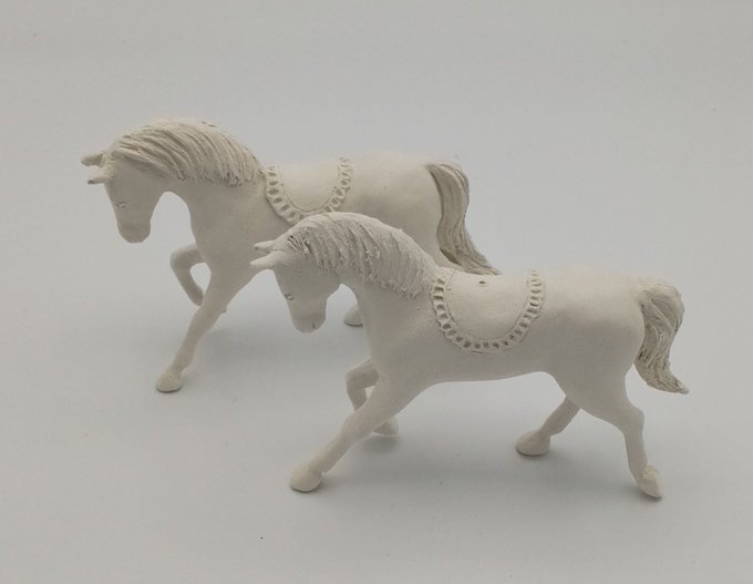 2 34 制作中〜🐎 この馬たちは細かい仕上げ以外ほぼ造形終了☆ これから可愛い馬具を付けて猫たちも乗る予定😺 #クレイアート 11/18〜23 #関登志個展 22/10/27 19:36