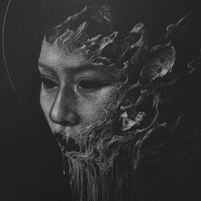 New piece! ‘Untitled 11’ Year of Completion : February 12, 2023 Medium : White Pencil, Black Paper, Cradled Wood Panel, White pencil powder form Size : 273x220mm/10.75x8.66 in Model by Nanami More info : linktr.ee/Toshihiroegawa #darkart #pencilart #portraitart #comtemporaryart