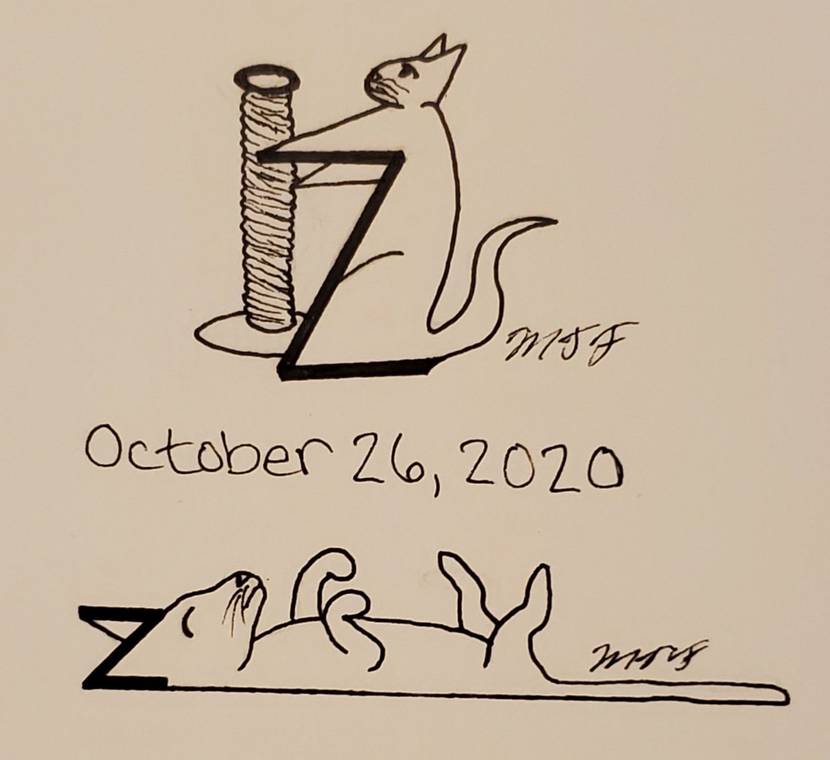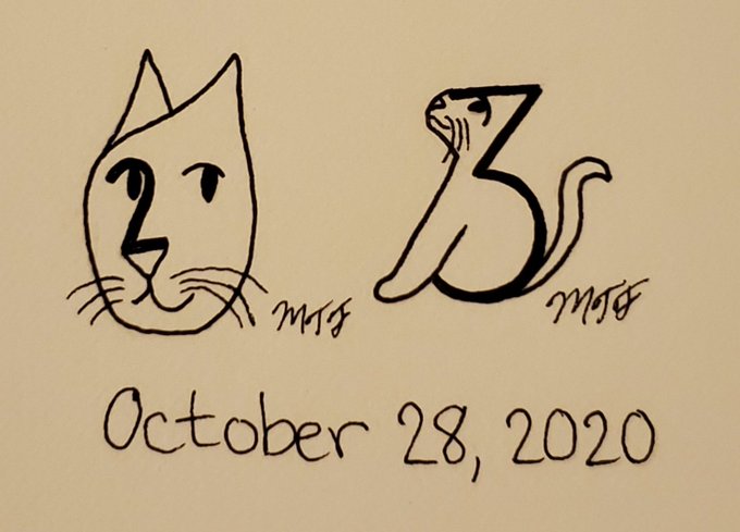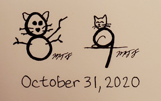 Final day of my Catober Inktober! I'm very proud of myself for sticking with it! Now, time to buy a new ink pen because I'm just about out of ink! Day 31: 8, 9 #Inktober #inktober2020 #inktober2020day27 #Catober #cats #Caturday #Ididit! #finished #completefont