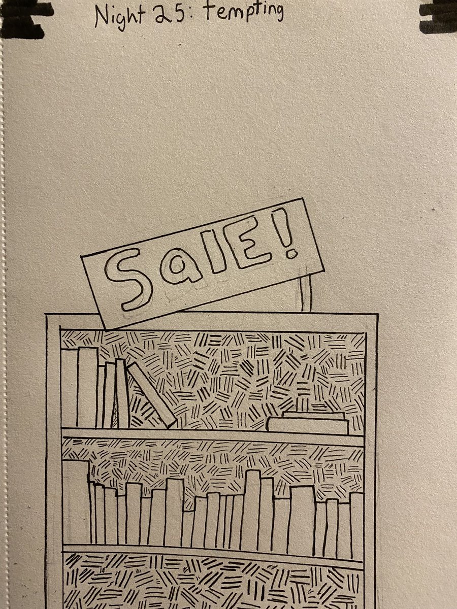 #inktober2022 Night 25: Tempting! Nothing says tempting like a sale on books! Well maybe a unattended tub of icecream… #inktober #inktoberday25 #tempting #inktober2022DAY25