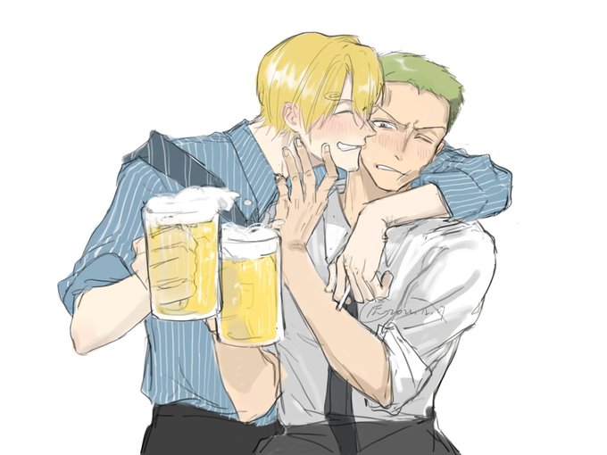 #ゾロサン #zosan キス... (还没画完但是我要发😗