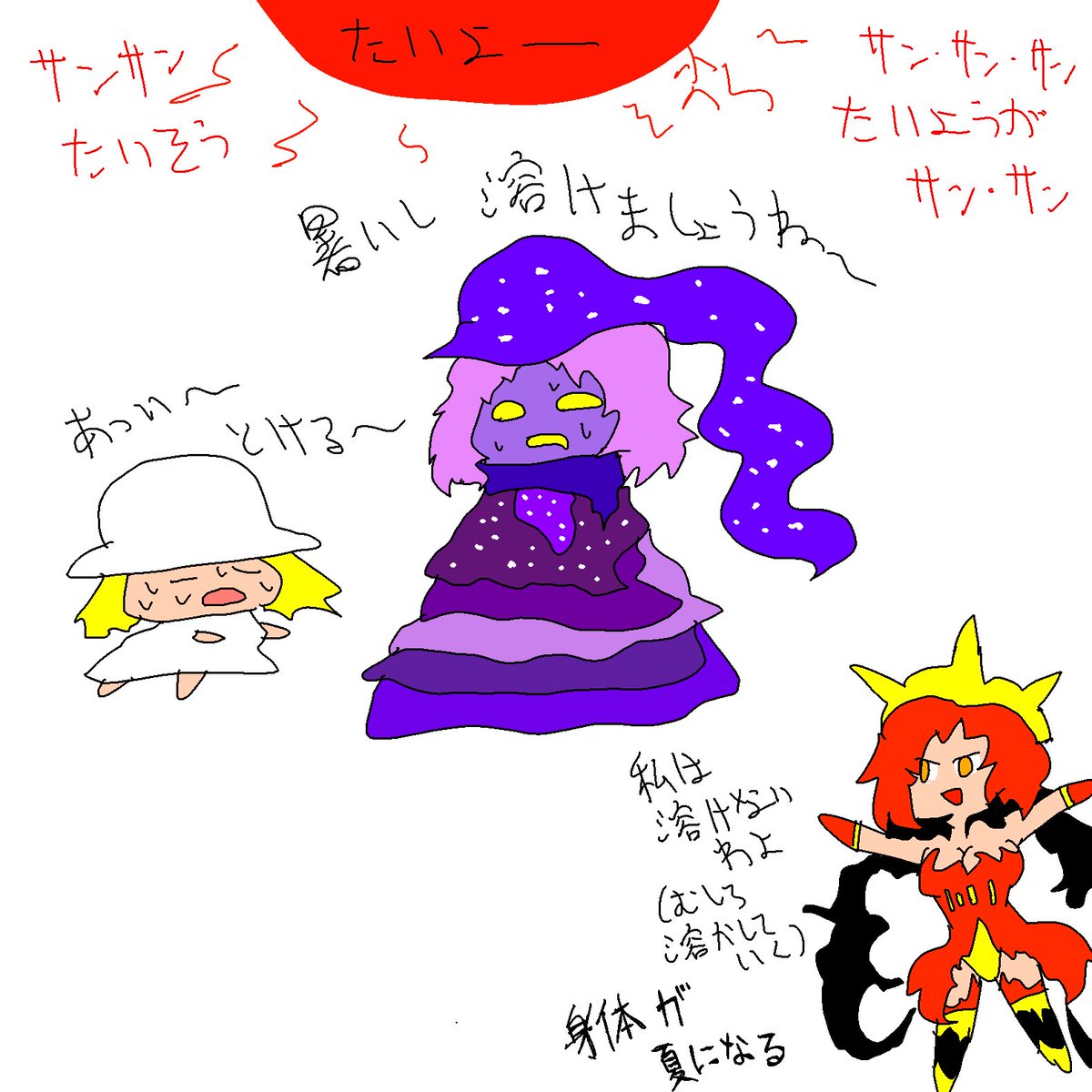 落書き ブルーベリージャムというキャラクターとCN:Girlといいキャラクターと熱中症のヴァルキューレというキャラクター 今の世界ってこんな感じ(白目) twitter.com/totsugekilaser…