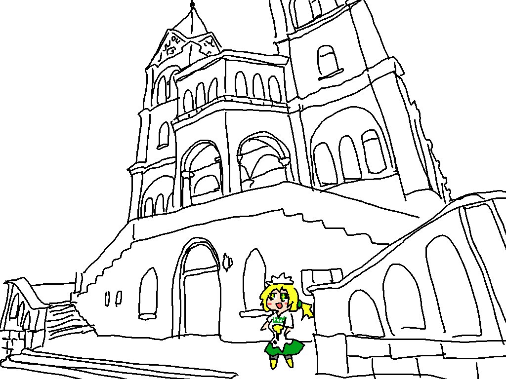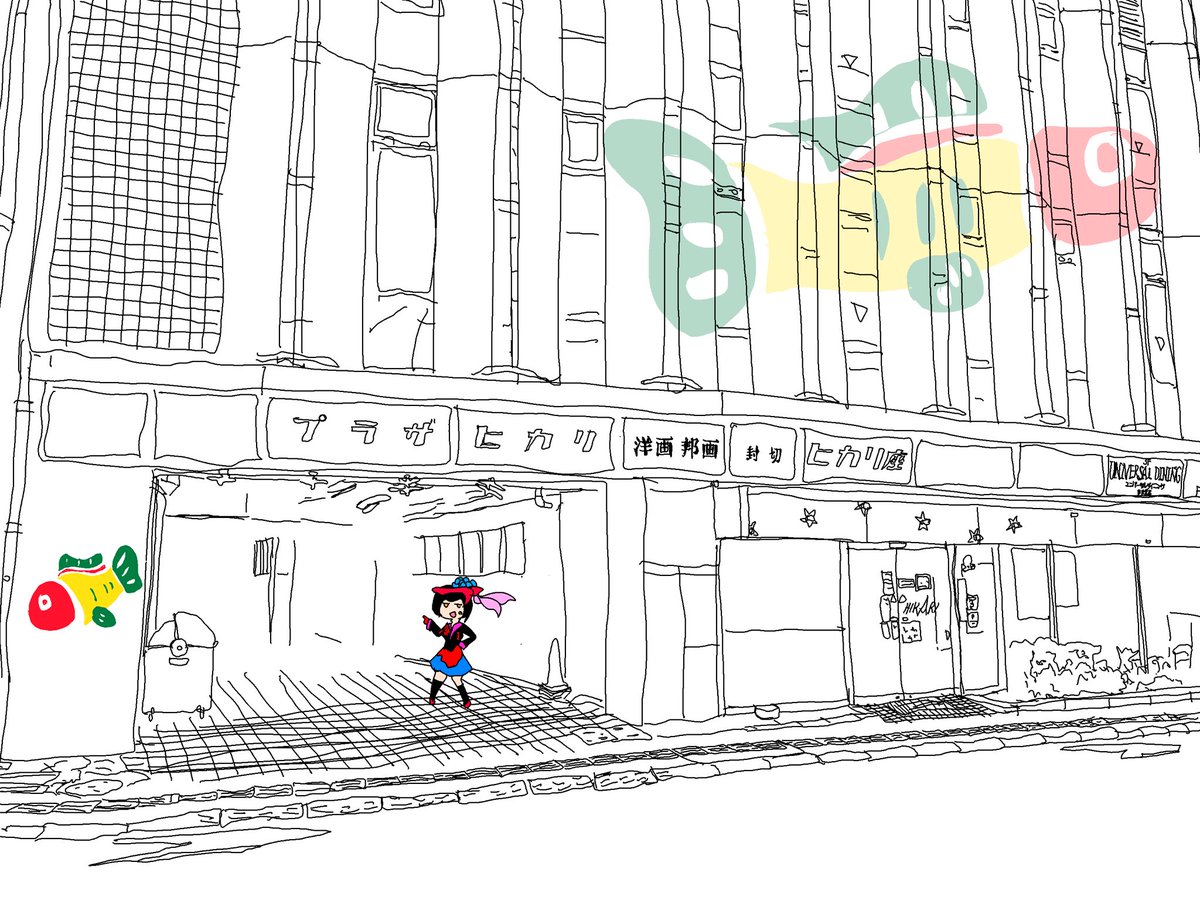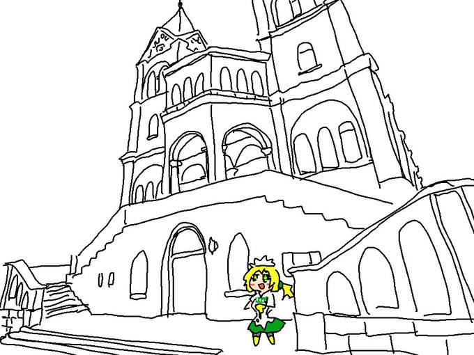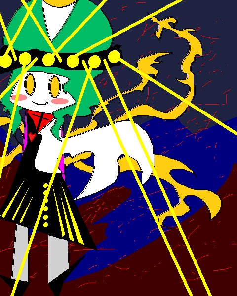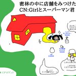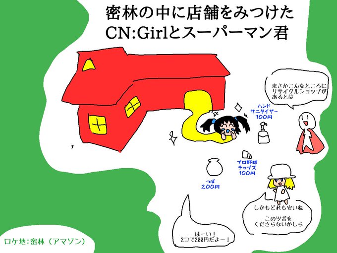 落書き マヨイガちゃん本家というキャラクターとCN:Girlとスーパーマン君というキャラクター 結局大した絵はかけず謎の風景がひとつうまれただけでこの夜が明けてしまいました(白目) twitter.com/totsugekilaser…