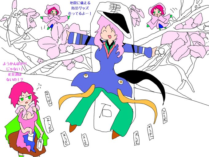 落書き 大鯰カナメというキャラクターと、ソメイヨシノというキャラクターと、ソメイヨシノマイヒメというキャラクター 大鯰カナメは今月生まれたキャラです(白目) twitter.com/totsugekilaser…