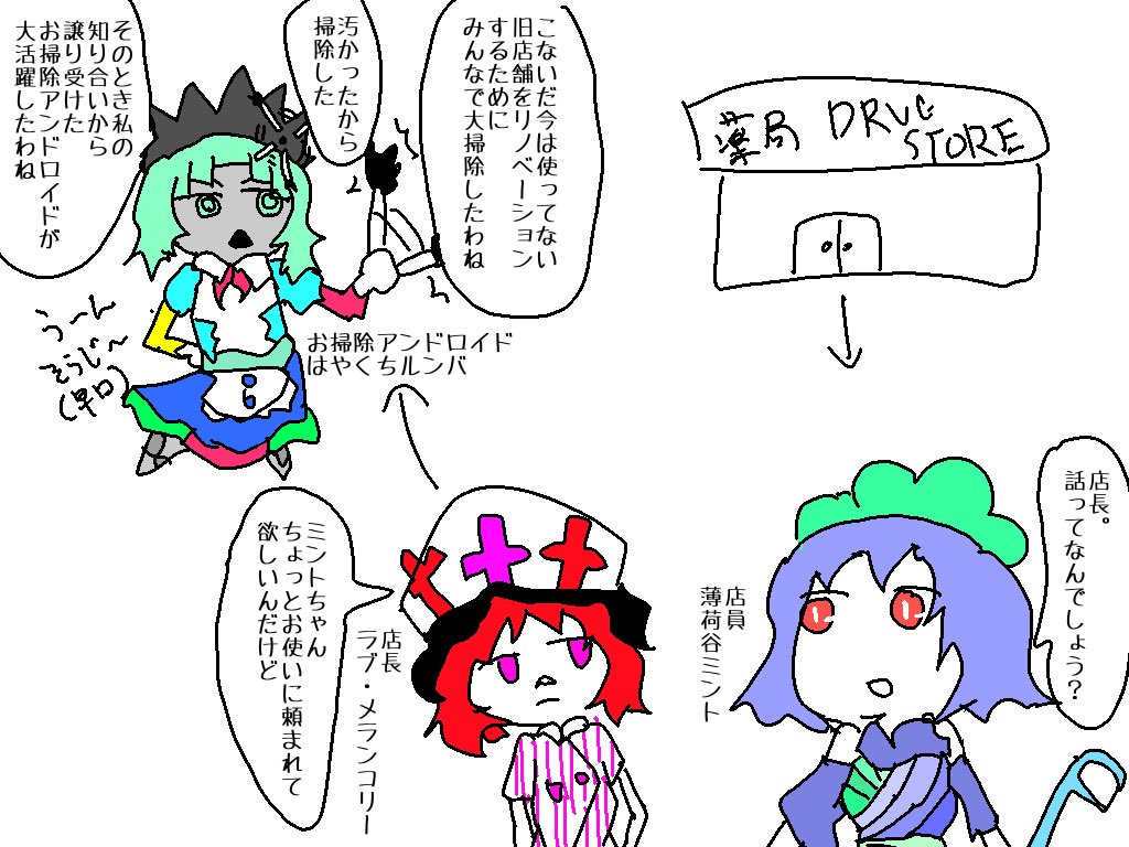 落書き 薄荷谷ミントというキャラクターとはやくちルンバというキャラクターとラブ・メランコリーというキャラクター 落書き漫画(全3p) 広沢虎造の浪曲『清水次郎長伝 〜 石松金比羅代参』のパロディ(白目) twitter.com/totsugekilaser…