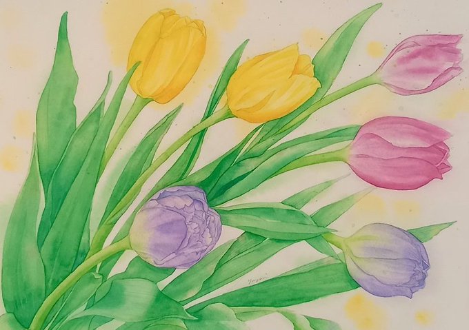 #これを見た人は真横の画像を貼れ 2年程前にマスキングの練習の為に描いた絵🖌️ この時はつけペンを使って塗っていました✒️ #水彩画 #植物画 #watercolor #Illustrator #イラストレーター