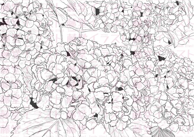こちらは黒ベタ付きのあじさいです。 ご使用希望の方はDMお願いします #背景素材 #背景イラスト #素材 #背景 #イラスト #あじさい