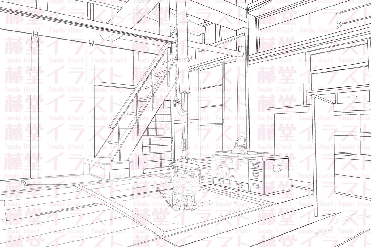 3 26 日本家屋の中の囲炉裏のある風景です 御使用希望の方はDMいただければと思います よろしくお願いします #背景イラスト #背景素材 #イラスト #背景 #漫画 #マンガ 22/05/24 14:06
