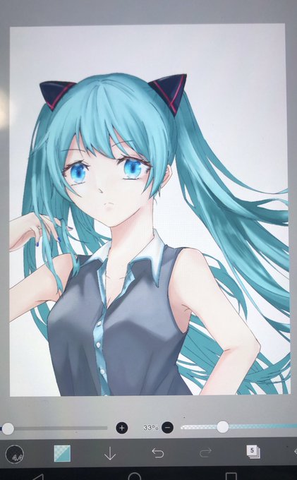 途中経過です〜 そろそろ出来上がりそうな感じもするけど まだまだ終わらない… #デジタルイラスト #ibisPaint #初音ミク #絵描きさんと繋がりたい #絵柄が好みって人にフォローされたい