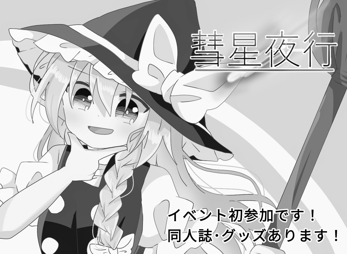 【告知】 丁度一か月後に静岡で開催される、東方駿河祭・第12幕に「彗星夜行」、サークル参加を申し込みました。 迫る入稿〆切に向けて各グッズ制作にスパートをかけて頑張っていこうと思います! 今回サークルカットを担当した人→@choroattohani_