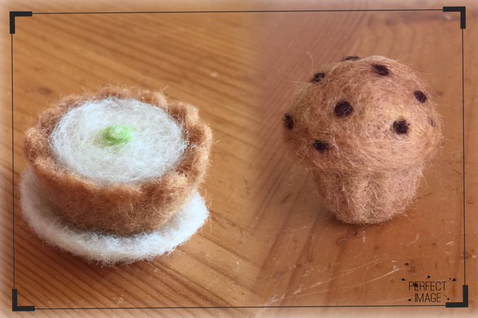 レモンチーズタルト(だったかな?)と マフィン完成!\(^o^)/ #タウンシップ #羊毛フェルト