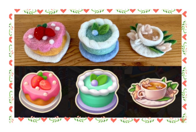 1 25 タウンシップ・ツクールチャレンジ🥰! ショートケーキ🎂 ミントケーキ🌿 ホワイトジャスミンティー☕ 完成〜❣🧶🪡\(^o^)/ˎˊ˗♫ #タウンシップ #羊毛フェルト 23/03/12 13:00