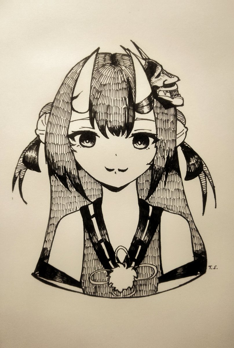 Nakiri ayame💕 I add a bit mustache 😅😎 #百鬼絵巻