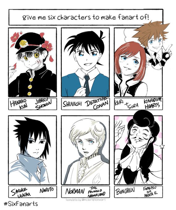 Disclaimer, I am not majoring drawing people, but I love this challenge. I am doing @Hallsth_Eien request in the next run, now there’s one more spot left for requests, now challenge me! #sasukeuchiha #norman #bonchien #ThePromisedNeverland #NARUTO #SixFanarts @TpnTroll