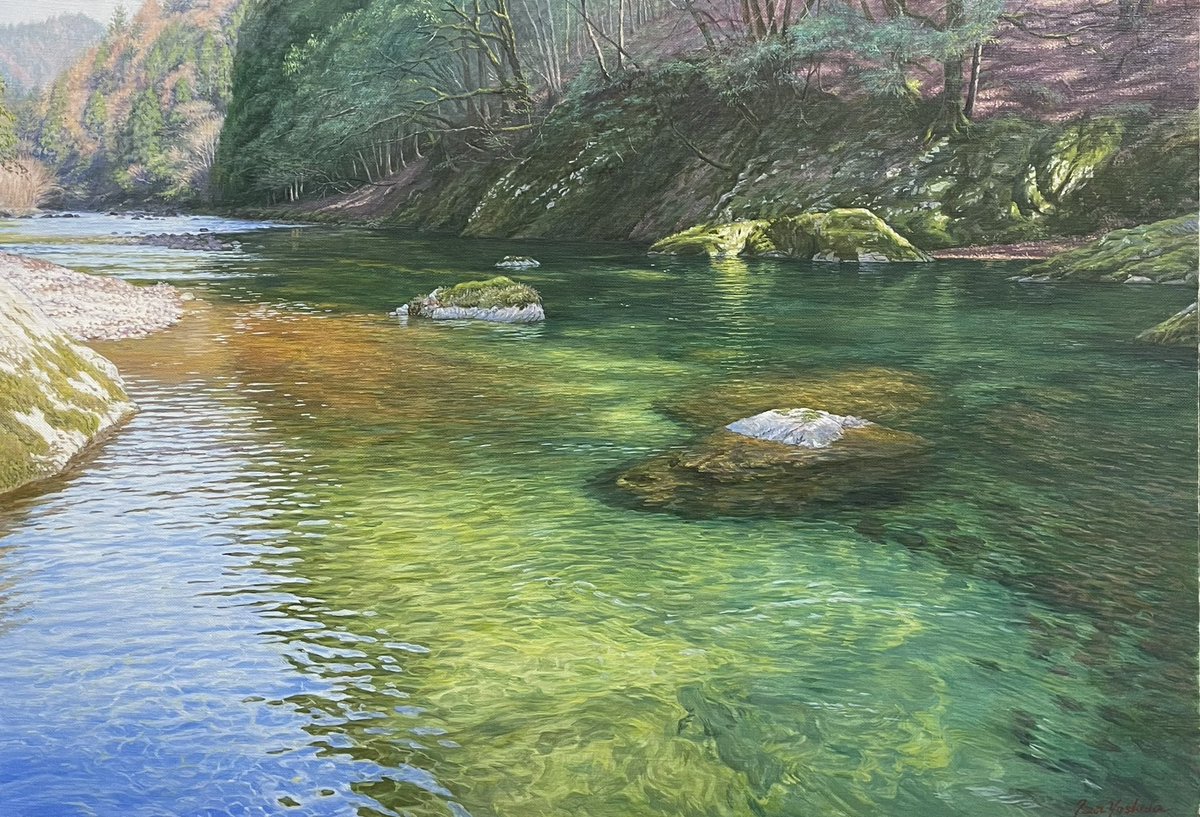 14 204 個展終了後の作品完成。芦生の森を流れる由良川を描きました。15号 #芦生 #渓谷 #風景画 #油絵 #画家 23/07/08 00:08