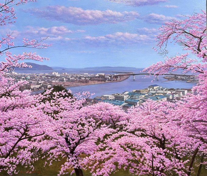 19 89 注文画完成 「石巻日和山公園から市街を望む」油彩画10号 今春に取材してようやく完成しました。震災前の町並みを再現し桜満開の時期を描きました。 #注文画 #油絵 #風景画 #桜 #画家 21/12/27 17:59