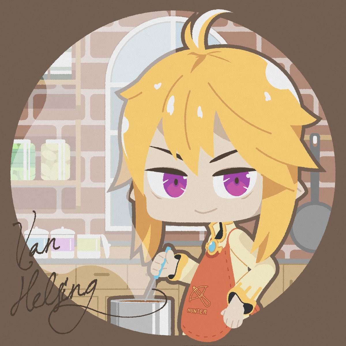 「お帰りマスター、今日はカレーを作ったんだ……自信作だから食べてみてくれ」 モンスパで一番主婦が似合うスターモン(とれいしー調べ)のヴァンヘルシングくん🥳 #モンスタースーパーリーグ #MSLお絵描き部