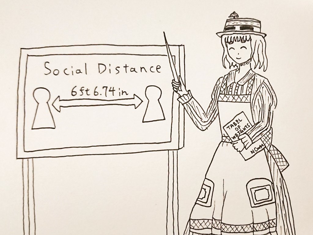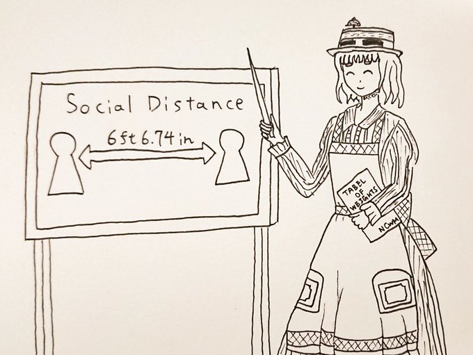 ソーシャルディスタンスにおいて、お互いにどの程度の距離をとればいいのか、ヤード・ポンド法で教えてくれるアメリアさん #駅メモファンアート