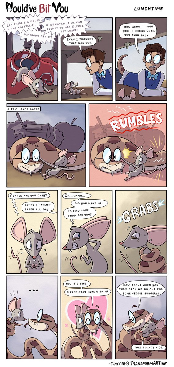 So apparently it was #WebcomicDay my shapeshifter romance comic #WouldveBitYou is now on Webtoon for those who want to catch up before I begin the next story arc. #WebcomicsDay 🐭🏳️🌈🐍 webtoons.com/en/challenge/w…