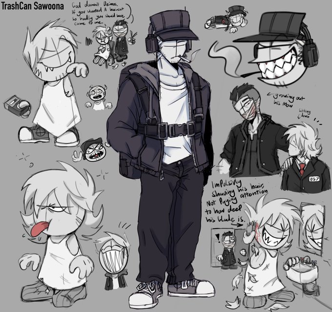 Was meant to be productive today. Instead I spammed music, watched Streams, and drew MadCom. Just a bunch of Deimos sketches w/ past interactions to Doc when they were both stuck in the agency (my HC lol) . #madnesscombat #Madnesscombatfanart